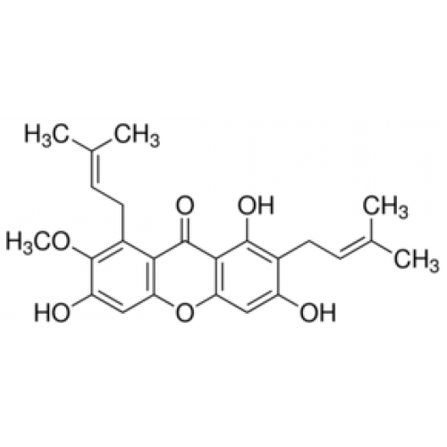 Mangostin is a natural xanthonoid, a type of organic compound isolated from various parts of the mangosteen tree (Garcinia mangostana). Alpha-Mangostin was reported to  have various physiological effects such as antioxidant , anti-inflammatory and anticancer activities.